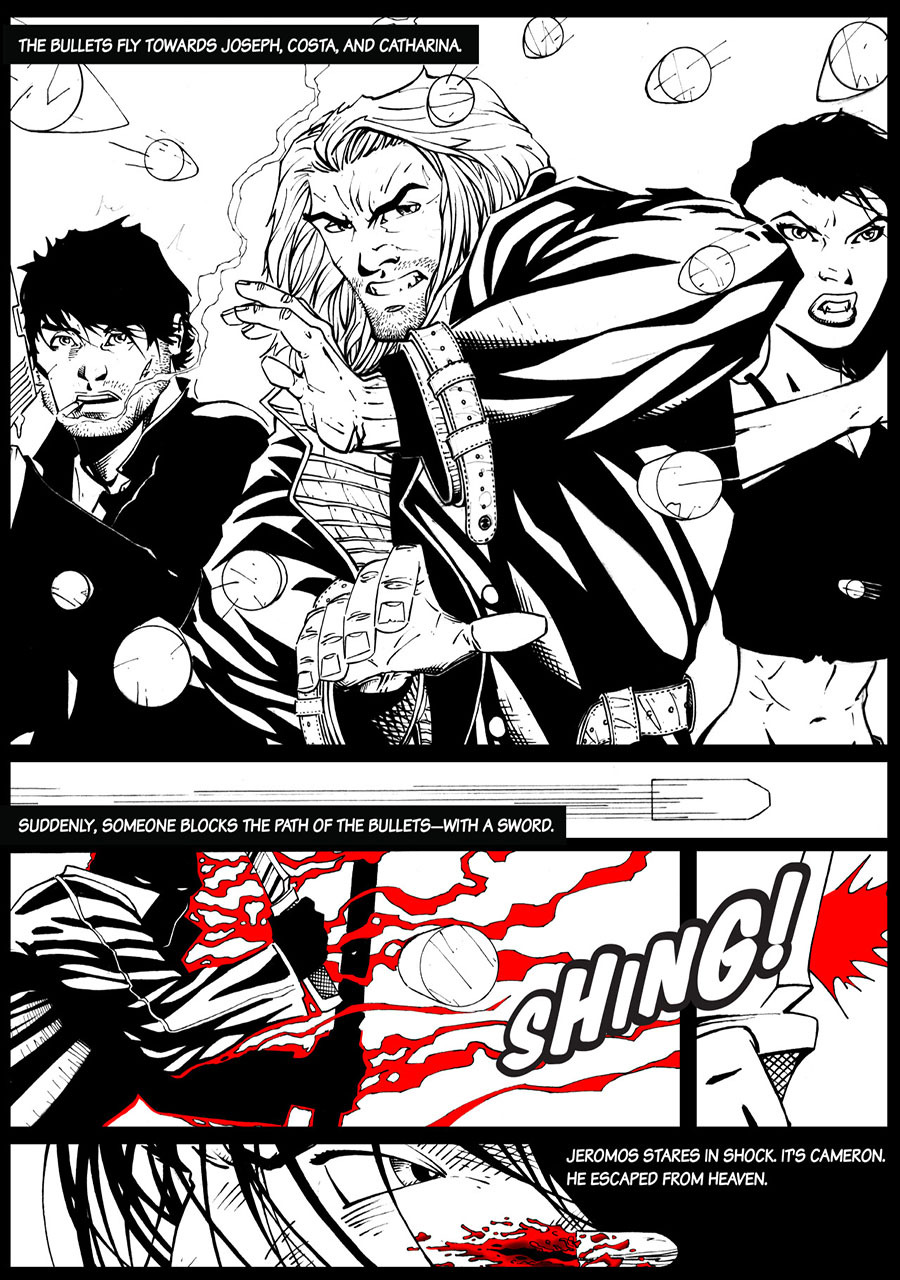 In Vampire Guardian Angels: Rule of Blood, Issue 5, a mysterious virus is killing Vampire Guardian Angels and Janos, their new Ruler, must find a cure. He sets up a "breeding program"  to repopulate his breed and provide virus-free humans for food. After the death of Leah and his unborn son,  Janos chooses Prince Jeromos Dracon, as his new heir, enraging Joseph, who also wants leadership. Jeromos kidnaps the author, Ms. Price, and plans to raise an army against Janos.  A resurrected Cameron makes one last attempt to save Joseph's life once again, and Joseph begins his quest to take over the leadership of the Vampire Guardian Angels.